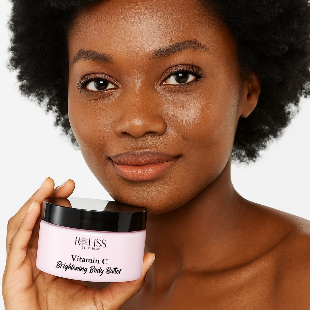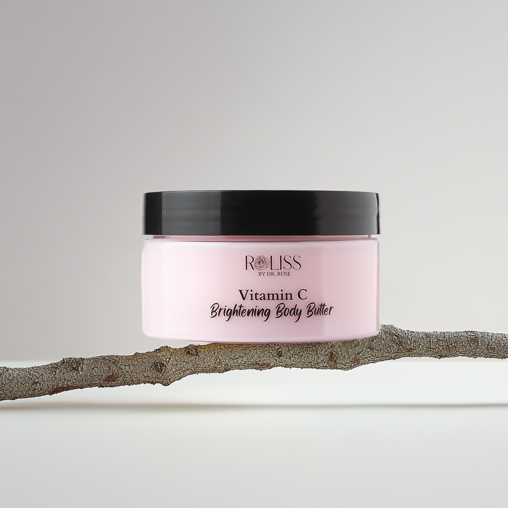 Unveil radiant, even-toned skin with our ultra-nourishing body butter, formulated to target dullness, discoloration, and rough texture. Infused with 10% Niacinamide to visibly fade dark spots and improve skin elasticity, and Vitamin C to boost radiance and defend against environmental stressors, this luxurious butter melts into the skin—leaving it softer, brighter, and deeply hydrated.